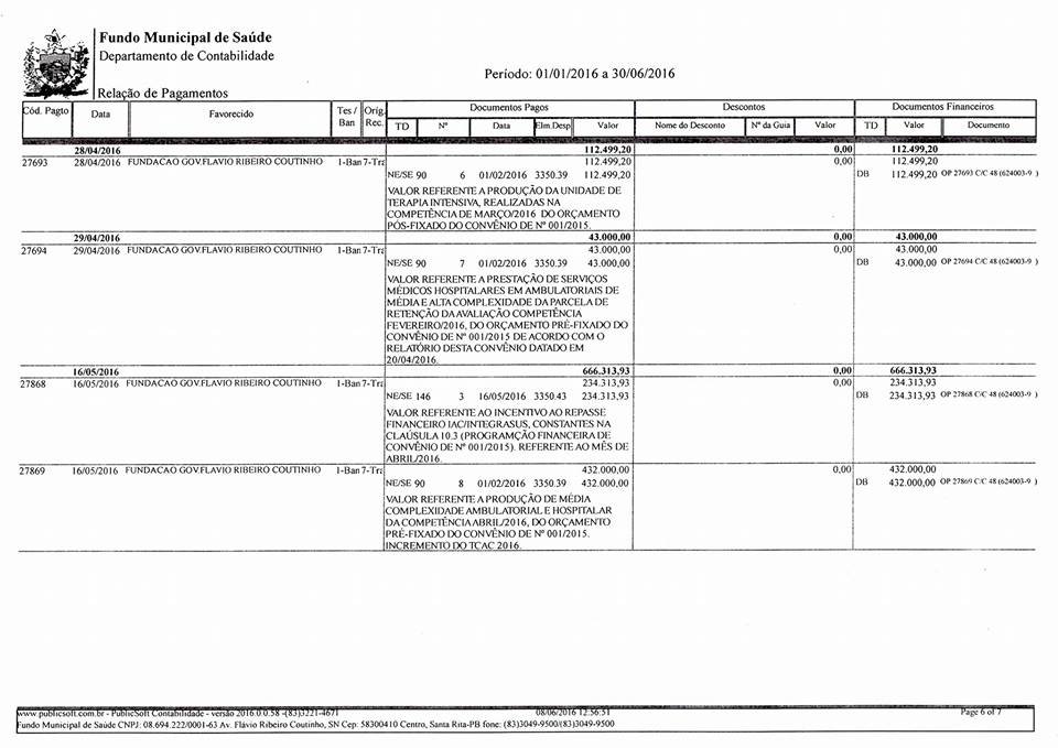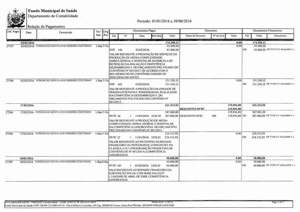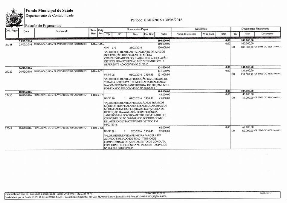 Diante de tudo isso, o governo do município esclarece que tem cumprido com todas as suas obrigações para com o Hospital e Maternidade Flávio Ribeiro Coutinho, e presta contas à população de que, mesmo em tempos de uma crise que assola todas as instâncias governamentais, tem mantido seu compromisso com a saúde de qualidade prestada ao nosso povo e o compromisso financeiro e estrutural que firmou com o hospital da cidade para que chegue às pessoas de forma eficaz e diligente.