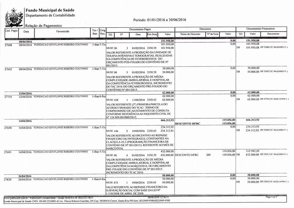 Relatório de gastos e prestação de contas está sendo preparado para ser apresentado ao Ministério Público Federal, no momento em que esta administração entende que se faz necessária auditoria realizada pelo MPF nas contas do Flávio Ribeiro, e irá solicitar ao órgão, vez que a instituição recebe verba federal, portanto, erário público, ato que auxilia, inclusive, no controle dos repasses da Prefeitura de Santa Rita aos grandes filantropos que dirigem o hospital da nossa cidade.