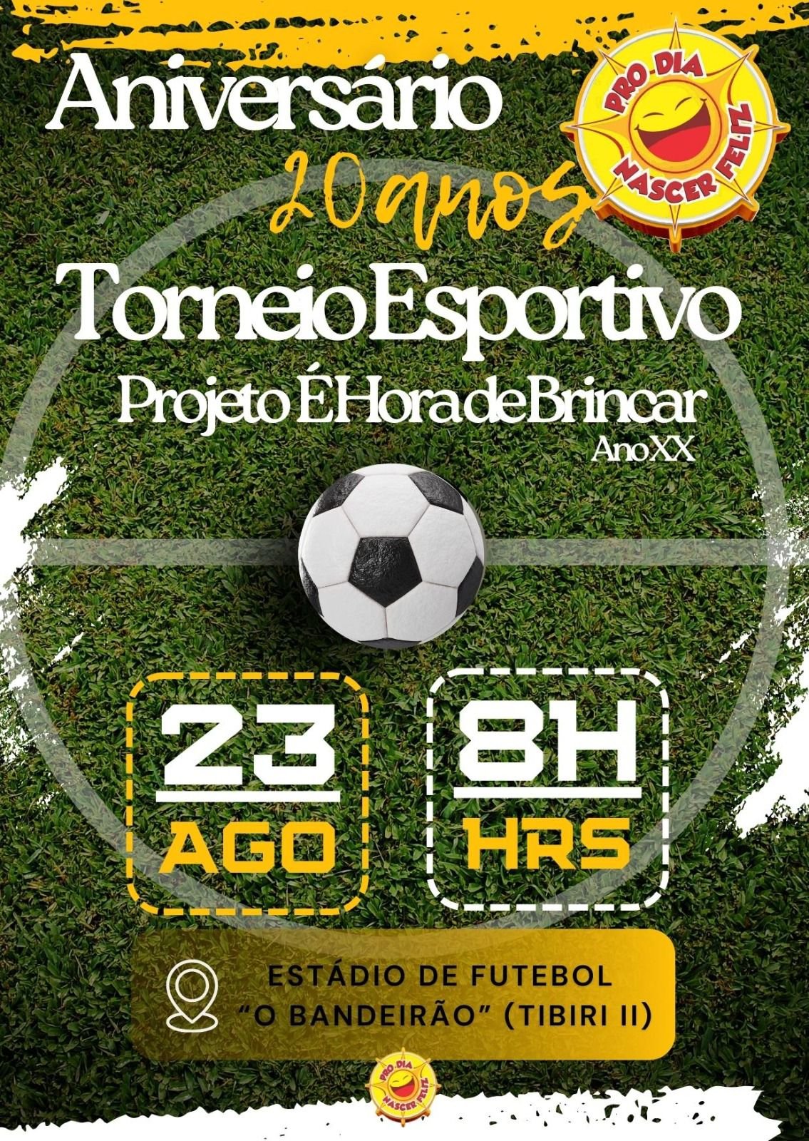 No próximo dia 23 de agosto, Santa Rita será palco de um evento esportivo que vai muito além das quatro linhas. O Estádio O Bandeirão, localizado no bairro Tibiri II, receberá o Torneio de Futebol de Campo promovido pelo projeto “É Hora de Brincar”, da Pro Dia Nascer Feliz, com início às 08h. A iniciativa tem como principal objetivo fortalecer os vínculos comunitários e promover a inclusão social por meio do esporte.